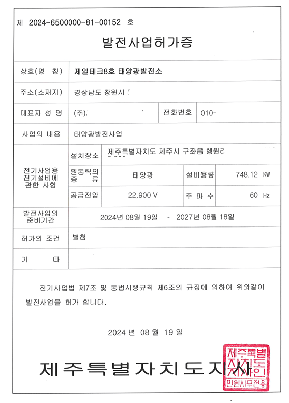 발전사업허가 접수진행중