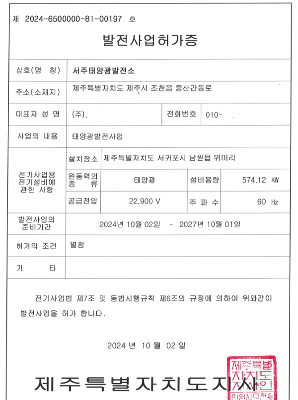 발전사업허가일